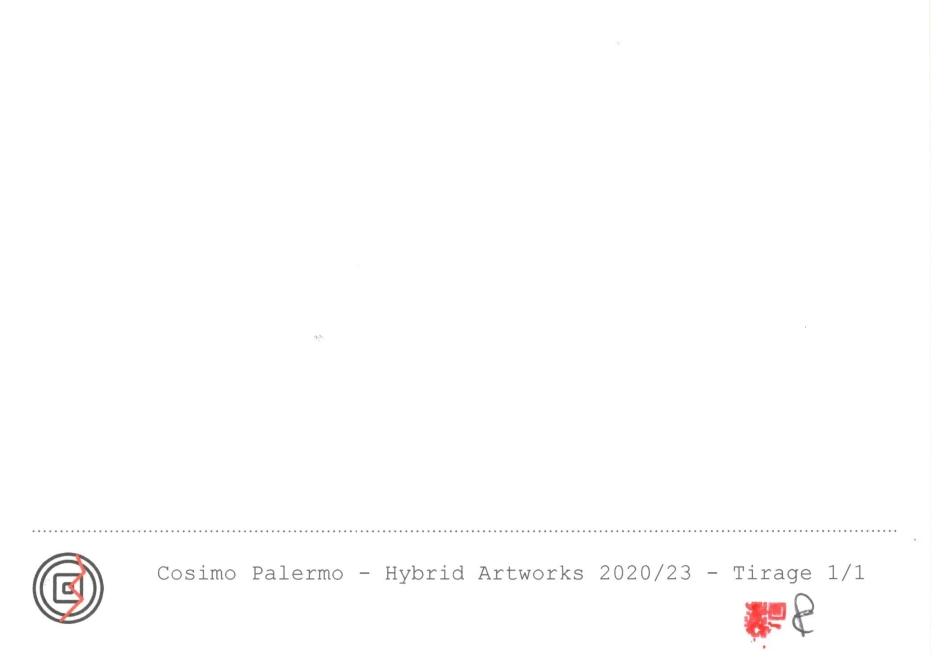 “Cosimo Palermo Hybrid Artworks 2020/23”, con tiratura 1/1, timbrata e firmata dall’artista (CP).