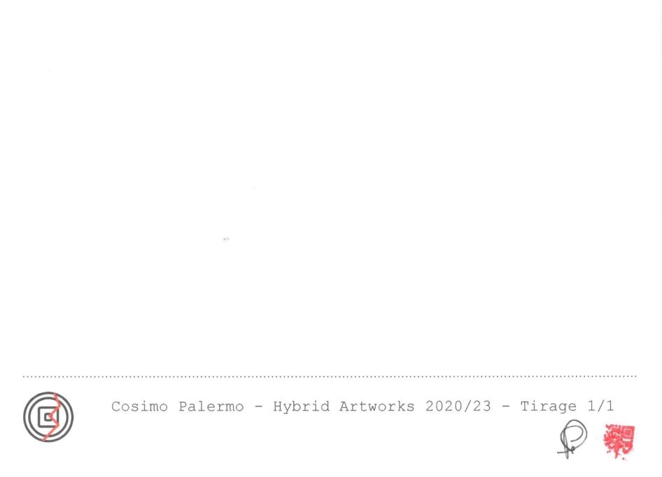 “Cosimo Palermo Hybrid Artworks 2020/23”, con tiratura 1/1, timbrata e firmata dall’artista (CP).
