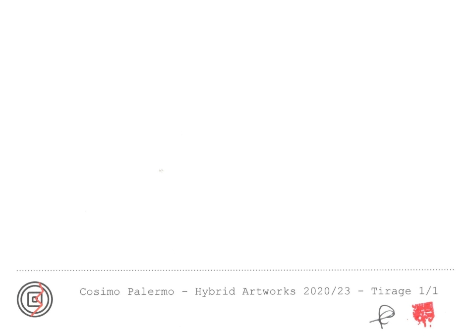 “Cosimo Palermo Hybrid Artworks 2020/23”, con tiratura 1/1, timbrata e firmata dall’artista (CP).