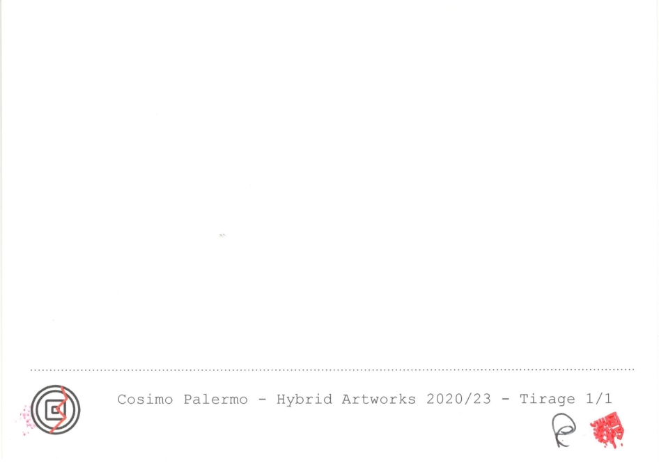 “Cosimo Palermo Hybrid Artworks 2020/23”, con tiratura 1/1, timbrata e firmata dall’artista (CP).