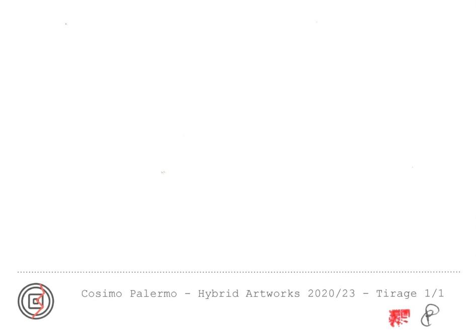“Cosimo Palermo Hybrid Artworks 2020/23”, con tiratura 1/1, timbrata e firmata dall’artista (CP).