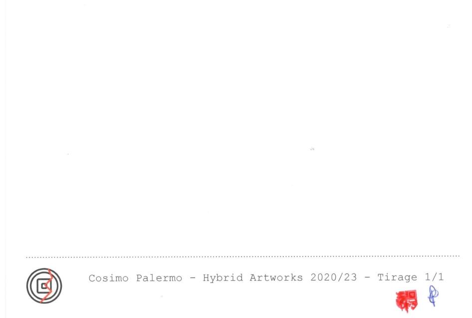 “Cosimo Palermo Hybrid Artworks 2020/23”, con tiratura 1/1, timbrata e firmata dall’artista (CP).
