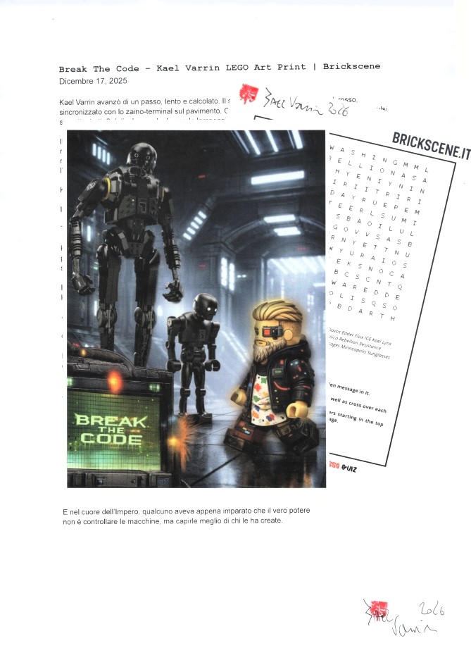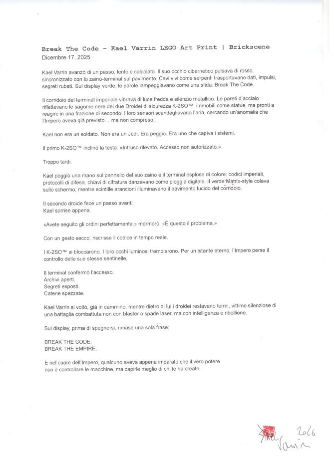 Donazione da 10 € in su → CARTOLINE in EDIZIONI LIMITATEOgni cartolina è un oggetto d’arte. Ogni copia è unica. Ogni edizione è irripetibile. Gli omaggi Brickscene sono ringraziamenti simbolici legati al supporto al progetto e variano nel tempo. Non si tratta di articoli fissi o di un catalogo commerciale: ogni periodo presenta una selezione diversa, in dialogo con il momento creativo e con il repertorio artistico attivo. Le cartoline inviate come omaggio saranno scelte “randomly” tra quelle a disposizione nel momento della donazione. Conto di stampare altre edizioni con cartoline diverse anche speciali (finitura diversa, carta speciale e dimensioni maggiori) molto presto. Al momento attingerò tra queste + alcune nascoste!