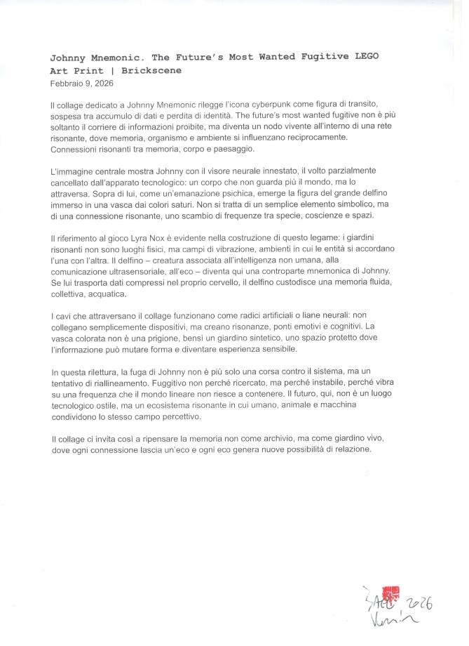 Cartolina Lego – Johnny Mnemonic – Tier Family