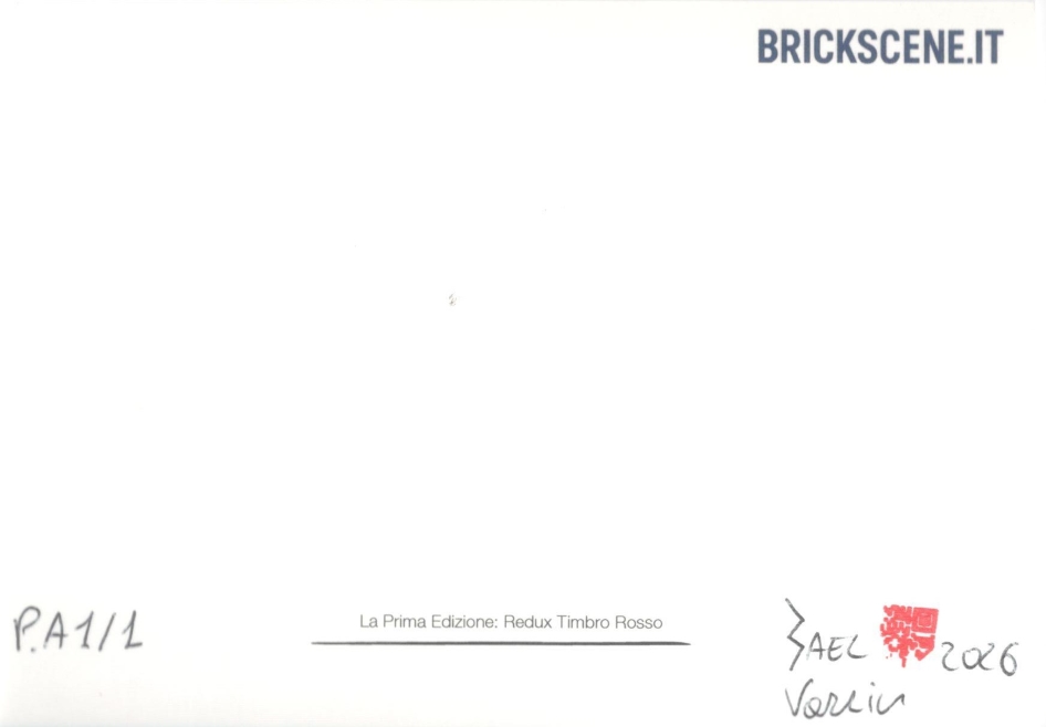 Donazione da 10 € in su → CARTOLINE in EDIZIONI LIMITATEOgni cartolina è un oggetto d’arte. Ogni copia è unica. Ogni edizione è irripetibile. Gli omaggi Brickscene sono ringraziamenti simbolici legati al supporto al progetto e variano nel tempo. Non si tratta di articoli fissi o di un catalogo commerciale: ogni periodo presenta una selezione diversa, in dialogo con il momento creativo e con il repertorio artistico attivo. Le cartoline inviate come omaggio saranno scelte “randomly” tra quelle a disposizione nel momento della donazione. Conto di stampare altre edizioni con cartoline diverse anche speciali (finitura diversa, carta speciale e dimensioni maggiori) molto presto. Al momento attingerò tra queste + alcune nascoste!