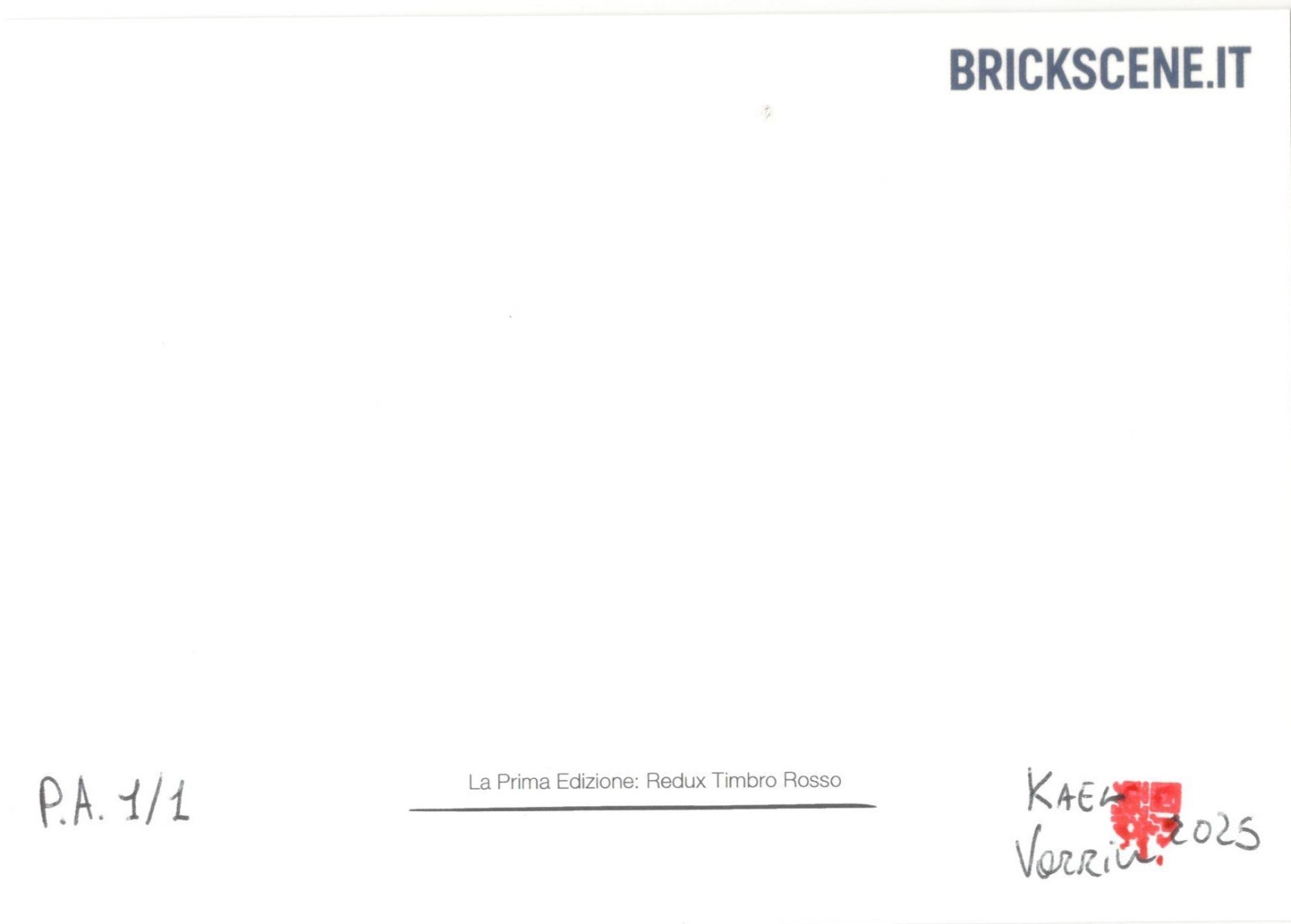 Donazione da 10 € in su → CARTOLINE in EDIZIONI LIMITATEOgni cartolina è un oggetto d’arte. Ogni copia è unica. Ogni edizione è irripetibile. Gli omaggi Brickscene sono ringraziamenti simbolici legati al supporto al progetto e variano nel tempo. Non si tratta di articoli fissi o di un catalogo commerciale: ogni periodo presenta una selezione diversa, in dialogo con il momento creativo e con il repertorio artistico attivoLe cartoline inviate come omaggio saranno scelte “randomly” tra quelle a disposizione nel momento della donazione. Conto di stampare altre edizioni con cartoline diverse anche speciali (finitura diversa, carta speciale e dimensioni maggiori) molto presto. Al momento attingerò tra queste + alcune nascoste!